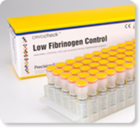 CRYOcheck™ Low Fibrinogen Control is intended for use as an abnormal control in quantitative fibrinogen assays. It is derived from citrated, pooled normal plasma, and adjusted to exhibit hypofibrinogenemic characteristics. Each lot number is tested by the Clauss Fibrinogen method.