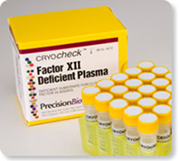 CRYOcheck™ Prekallikrein Deficient Plasma is fresh-frozen plasma collected by plasmapheresis from a congenital donor who has been assayed to have less than 1% activity for prekallikrein. Other coagulation factors have been assayed and results are provided on the Certificate of Analysis that accompanies each lot number.